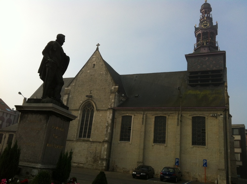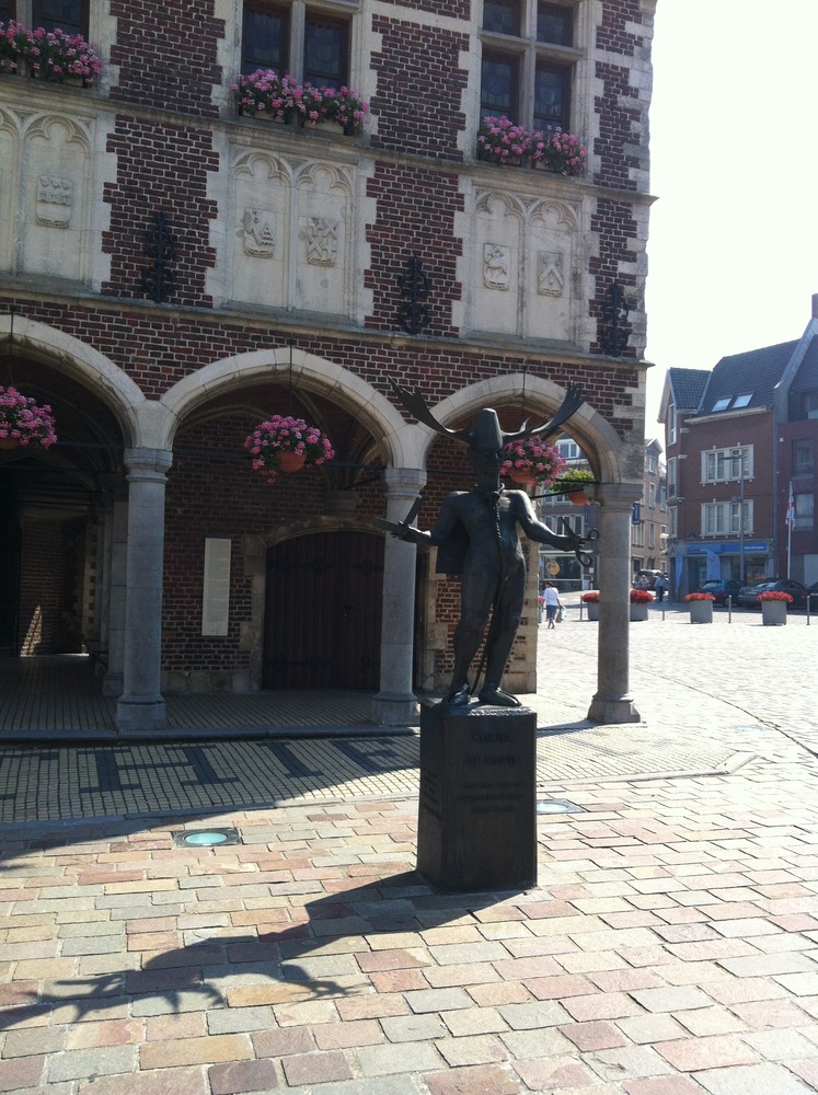 Back on the road, the mist had lifted and the sunshine bore down intensely. Just before Tielt I had to make an energy raid in the knapsack for dates and dried apricots. I was eyed warily by sheep. The roads in Flanders are straight, flat and tedious, but the monotony is broken by the lovely town squares with their gabled guildhalls and belfries. At 10.30, the people of Tielt were awake and drinking beer in the Grote Markt. Olivier le Daim, who cut the hair of Louis IX of France, as well as performing other, baser biddings, is the town’s most esteemed denizen. The scoundrel met his end upon the scaffold in Paris.