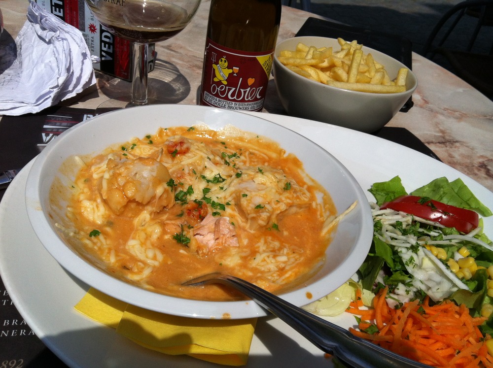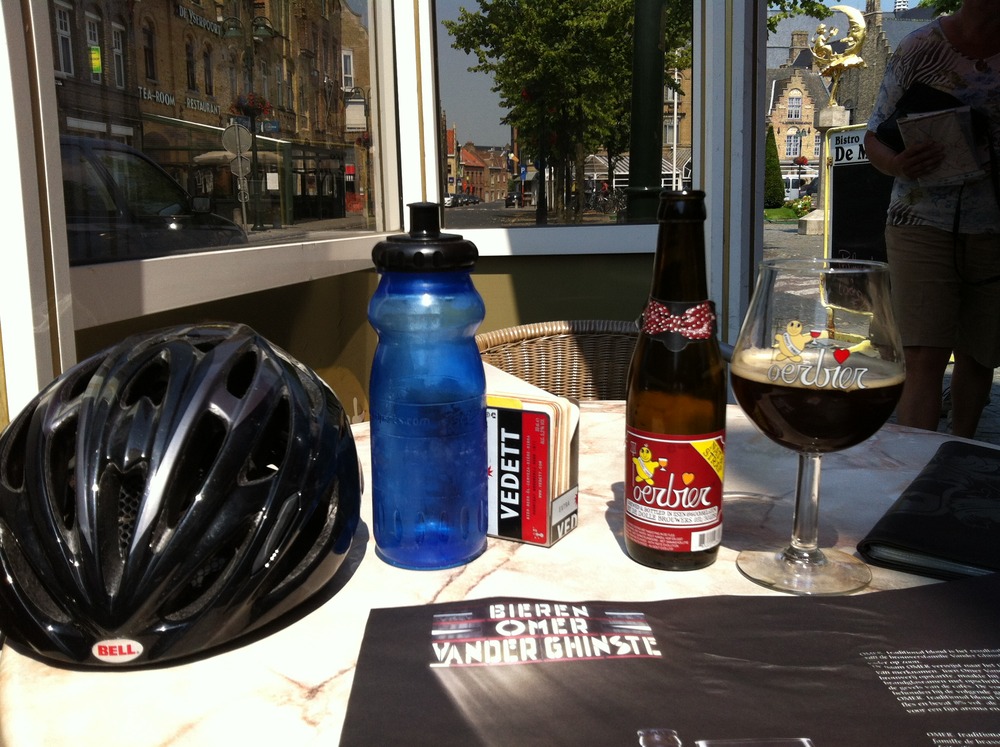 I decide to stop for lunch at Diksmuide, close to the frontline in the First World War, 68 miles from Brussels. Oerbier is a delightful tipple, brewed just outside Diksmuide. It washed down a vispotje, overlooking the attractive, flag-draped Stadhuis, and was followed up with another powerful local offering, Ijzerbier. Lekker!