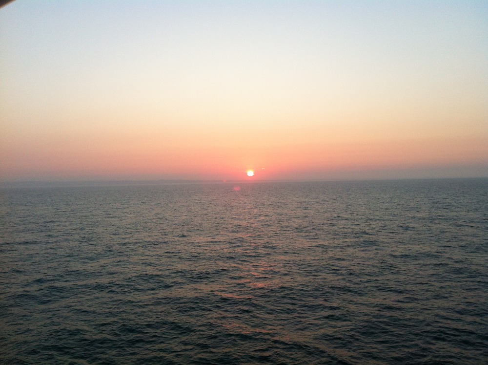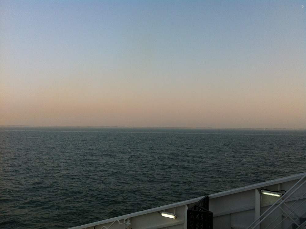 This is soulless, expansive territory, impelling its inhabitants to create convivial towns. I was relieved to reach the car ferry, order a bottle of Shepherd Neame, and watch the sunset. It was dusk when the white cliffs reared into view.