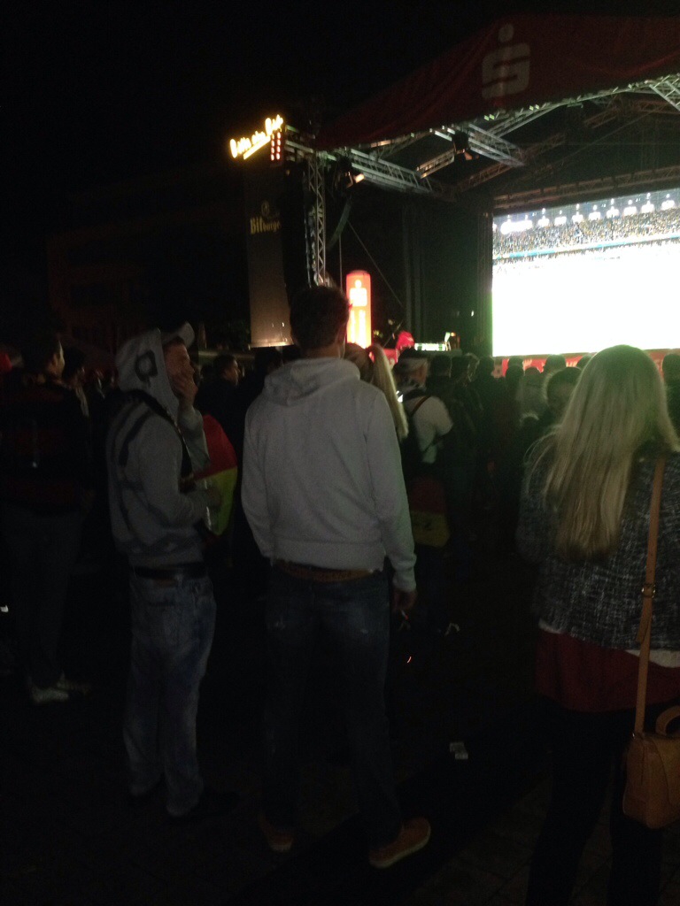 A giant screen occupied one side of a wet Viehmarkt, Trier, the rest of the square enclosed by beer stands. The space was only half full, and the atmosphere was jovial but not jubilant. A modest triumphalism greeted the post match streets; the usual horns and fluttering flags from car windows, and faces painted with the national colours, which you get on the continent.